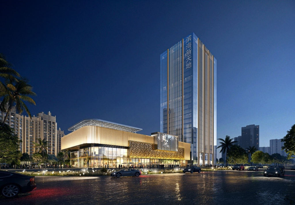 中國電建大灣區(qū)科創(chuàng)中心基地位于廣東省廣州市花都區(qū),是由中電建(廣州)城市投資發(fā)展有限公司投資開發(fā)建設(shè)。該項目幕墻形式主要包括玻璃幕墻、鋁板幕墻等,總建筑面積約為62000平方米,幕墻面積38000平方米,建筑高度為162 1米。該項目是一棟超高層辦公樓,建成后將打造成為具備總部基地的地標性建筑。海口濱海新天地商業(yè)綜合體 位于海南省海口市,是由